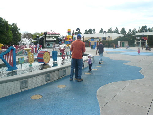 This was a fountain (made of... LEGOS!) where if you stepped on the pads in front, it started the water spewing and the instrument playing. We all had a lot of fun making it go!